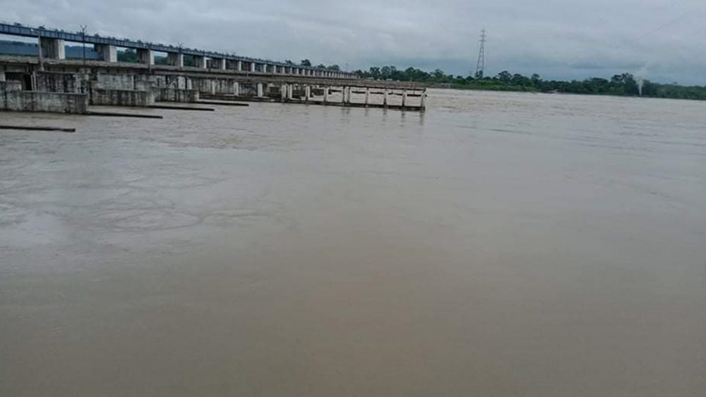 त्रिवेणी (नवलपरासी) । लगातार परेको वर्षाका कारण नारायणी नदीमा पानीको बहाव बढ्न थालेपछि त्रिवेणीस्थित गण्डक ब्यारेजका २२ वटा ढोका खोलिएको छ ।